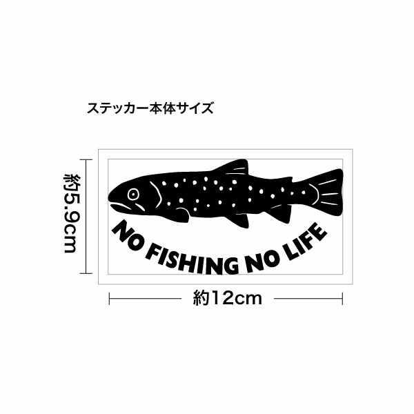 【NO FISHING NO LIFE 046 イワナモチーフ カッティングステッカー ミニサイズ 3枚組 幅約12cm×高約5.9cm】ノーフィッシングノーライフ、釣りのない人生などありえない、釣りが大好きで大好きでしょうがない!愛車のウインドーやちょっとしたところにペタっとひと貼り♪